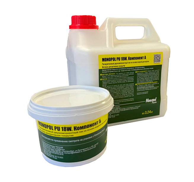 MONOPOL PU 18W — полиуретановый двухкомпонентный лак на основе водной дисперсии. Матовое декоративное покрытие.